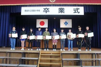 卒業式リハーサルに続き、皆勤賞・精勤賞の表彰を行いました・皆勤賞は6年間無欠席の児童に、精勤賞は6年間で欠席が3日以内の児童に贈られる賞です。本当によく頑張りました。