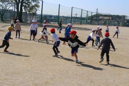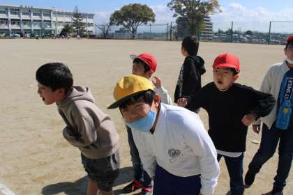 1年5組とフレンド学級の体育の授業の様子です。春のような陽気の中、子どもたちは元気よく体を動かしています。フレンド学級では、日直さんの号令でとっても元気よく挨拶ができていました。とっても立派ですね。