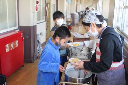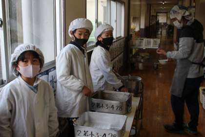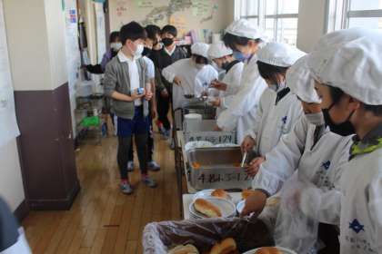 続いて3年1組,3組,4組の給食の様子です。給食当番さんが配膳をがんばってくれています。いつもありがとうね。
