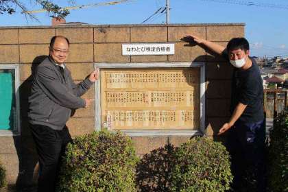 校庭のなわとび検定合格者の掲示板が更新されました。今年1年で多くの子が「神様」「達人」「師範」「初段」に合格し、子どもたちの名前でいっぱいになりました。本当によくがんばりましたね。来週卒業する6年生の子たちの名前も、1年後までは掲示板に掲示されています。保護者の皆様もご来校の際にはぜひ、掲示板をご覧ください。