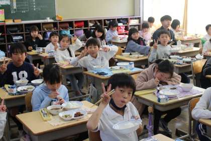給食の様子 2年2組,3組,4組 公開日 2023/03/22 更新日 2023/03/22 お知らせ 続いて2年2組,3組,4組の給食の様子です。今日はキムチ入り味噌汁でした。とってもおいしかったですね!!