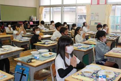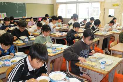 今年度最後の給食でした(2) 公開日 2023/03/23 更新日 2023/03/23 お知らせ 続いて3年4組,5年1組,2組の給食の様子です。1年間ともに過ごしてきたクラスの仲間との最後の給食です。