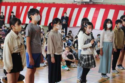 校長先生に感謝の気持ちを伝えました 公開日 2023/03/24 更新日 2023/03/24 お知らせ 修了式終了後、サプライズで校長先生に感謝を伝えました。今年度をもって退職となる校長先生に全校児童から大きな声で「ありがとうございました」。今までの感謝を届けました。