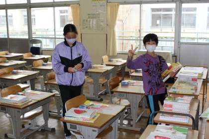 受付の準備をしたり、真新しい教科書を教室に運んだり。1年生のために真心こめて準備に取り組む姿はとってもかっこいいです!!