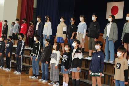 「歓迎のことば」の練習の後は校歌隊による校歌の練習を行いました。明日は校歌隊32人で校歌を1年生に聞かせることになります。緊張すると思うけど、練習の成果を発揮できるようにがんばろうね!!