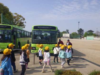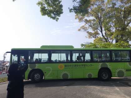 今日は朝から1年4組と5組が交通安全講習にでかけました。みんなお行儀よくバスに乗車し楽しそうに出発しました。バスから手を振ってくれました。
