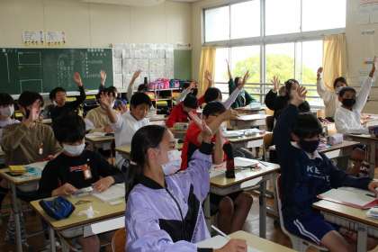 6年1組,6年2組の授業の様子です。6年1組は多くの子が積極的に挙手をしていました。6年2組は5時間目は図工でした。出された課題に集中して取り組んでいて、とっても立派でした。さすが6年生ですね!!