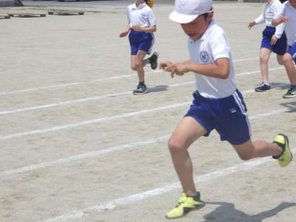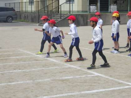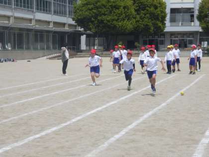 短距離走の練習です。頑張ってはりしました。熱中症対策で水分補給はこまめにしました。