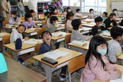 続いて1年4組,1年5組,2年1組の授業参観の様子です。1年生にとっては小学校初めての授業参観でした。