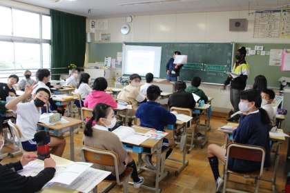 続いて4年3組,4年4組,6年1組の授業の様子です。6年1組はALTのグレッグ先生と英語の学習中。みんなで楽しく活動することができていました。