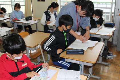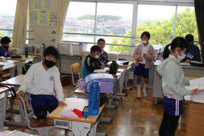 続いて4年3組,4年4組,5年1組の朝の様子です。5年1組では担任の先生が健康観察カードの確認をしていました。今日も元気に登校してくれてありがとうね!!