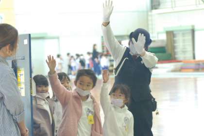 交通安全指導員とPTA安全委員会による交通安全教室が開催されました。