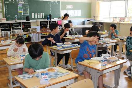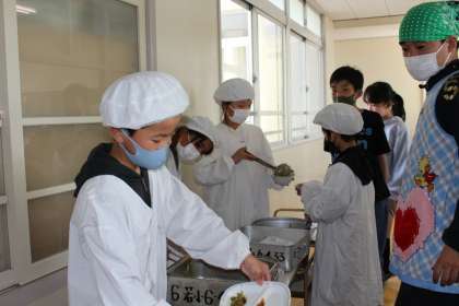 最後に6年4組,フレンド学級の給食の様子です。明日から土日です。ゴールデンウイークも近づいてきました。よい週末を過ごしてくださいね。月曜日、また元気で会いましょう!!