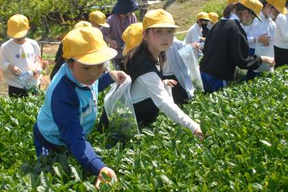 実際に児童たちが一番茶を摘んでお土産に持って帰りました。