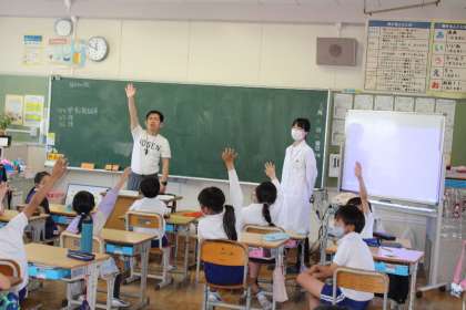本日4年1組,4年4組は講師の先生をお迎えして「食に関する指導」を行いました。毎日おいしく食べている給食の食材はどこから運ばれているかなどを楽しく学び、地産地食について詳しく知ることができました。本日講師としてご来校くださった栄養教諭の先生、本当にありがとうございました。