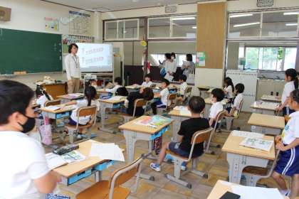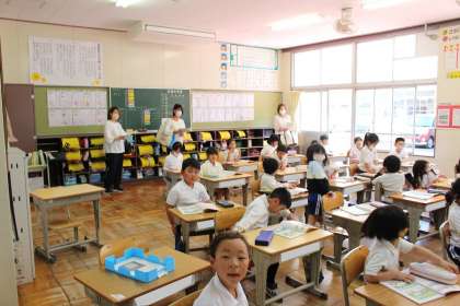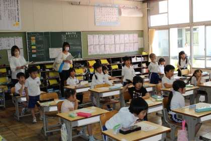 本日1年生は、3月までお世話になったこども園、幼稚園の先生方をお招きして幼こ小連絡会を実施しました。子どもたちは久しぶりに園の先生たちにあえてとっても嬉しそうでした。5時間目には園の先生方に授業をご参観いただき、算数の学習に頑張って取り組む姿を見ていただきました。
