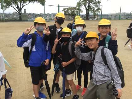 今日は2,4,6年生がジブリ遠足です。バスに乗って出発です。