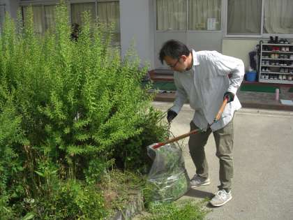 よろずサポーターによる環境整備 公開日 2023/06/06 更新日 2023/06/06 地域学校共働本部 去る5月27日(土)によろずサポーターの皆さんが職員室前の植え込みの整備を行いました。皆さん楽しく取り組んでくださいました。