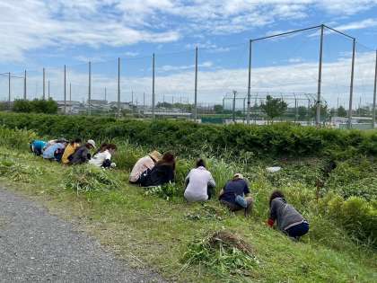 事業委員と6年生保護者で逢妻男川除草作業を行いました。