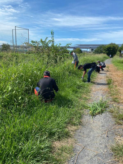 6年生保護者の皆さんと事業委員とで逢妻男川除草作業を行いました。