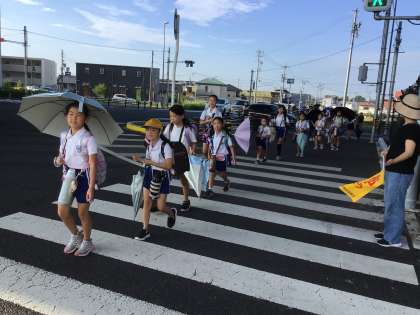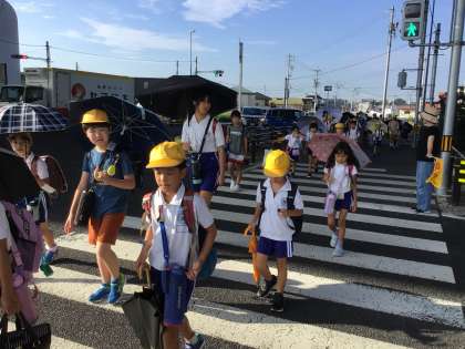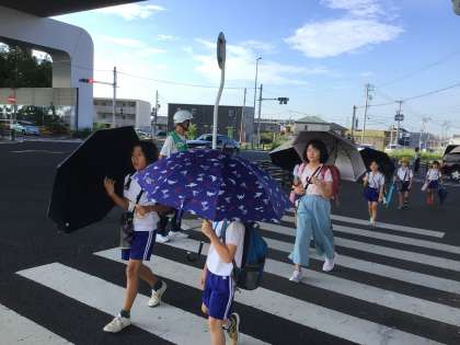 暑さの中元気に登校