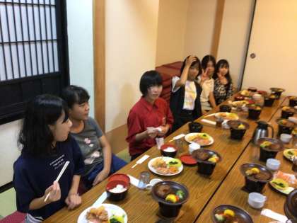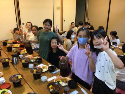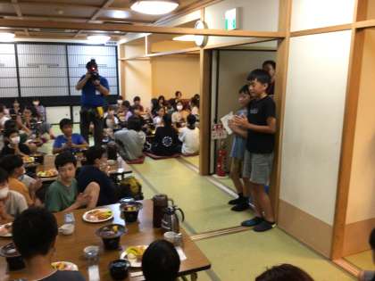 夕食の様子の続きです。子どもたちは夕食が終わり、クラスごとに入浴中です。入浴後は体験活動です。楽しい活動はまだまだ続きます。体験活動の様子は後ほど更新します。