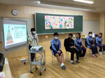 若園中学校まで歩いて移動し、若小フレンド学級と若中スマイル学級の中学生とクリスマス交流会を行いました。
