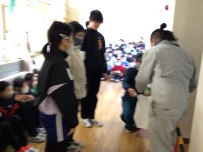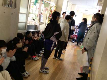 体育館とトイレの工事をしてくださった方々に感謝の気持ちを伝えました。