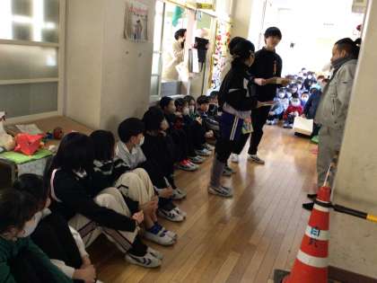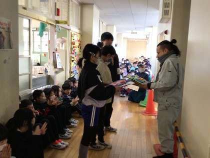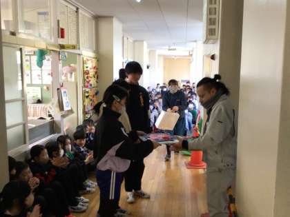 体育館とトイレの工事をしてくださった方々に感謝の気持を伝えました。