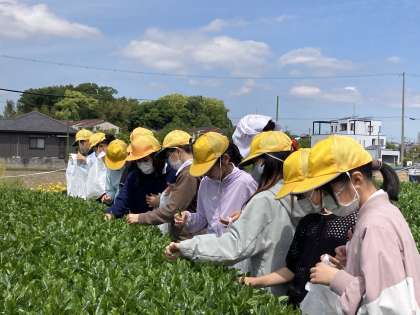 今年も高香園さんの茶畑にて茶摘み体験をさせていただきました。
