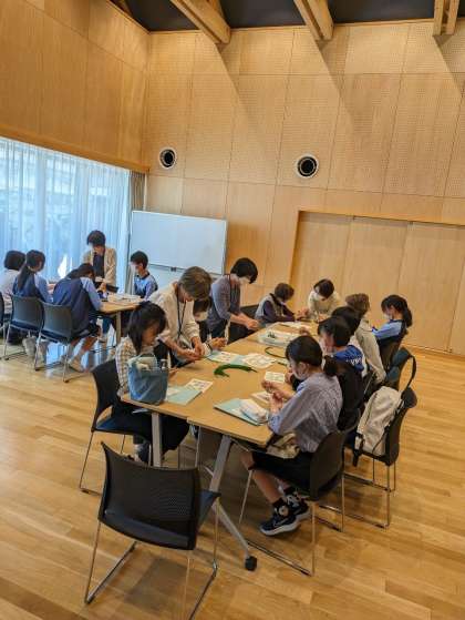 ボランティアについての話を聞き、シトラスリボン作りの体験をしました。