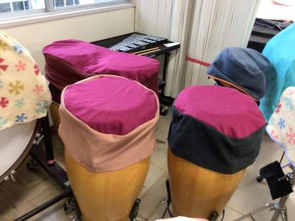 楽器カバーを作っていただきました!! 公開日 2024/08/29 更新日 2024/08/29 地域学校共働本部 共働本部のサポーターさんが、大太鼓や小太鼓、コンガやボンゴなど、楽器の大きさにぴったり合ったカバーを手づくりで作ってくれました。また、オルガンやキーボードを運ぶための台車も手づくりでサポーターさんが作成してくれました。感謝して大切に使っていきたいですね!