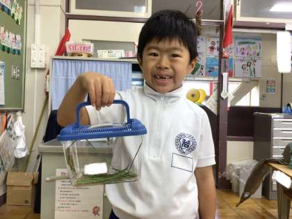家で捕まえた虫を見せてくれました。今日も生活科の虫採りの時間が楽しみのようです。