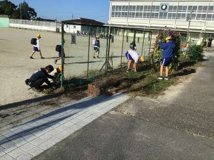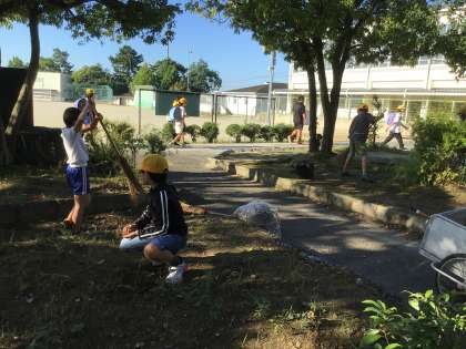 公務手さんのお手伝いで、落ち葉拾いや草取りをしてくれています。