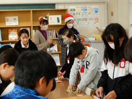 毎年恒例の若小クローバー主催のクリスマスカードづくりを実施中です。