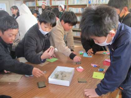 調べ室(高学年)、ブックランド(中学年)、なかよしホール(低学年)の3会場で実施しています。会場は大盛況です。