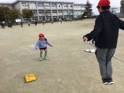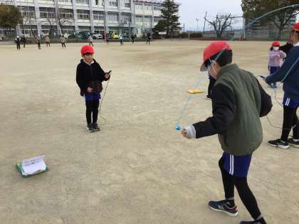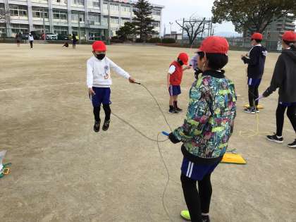 なわとび記録会の取り組み方を6年生が優しく教えます。
