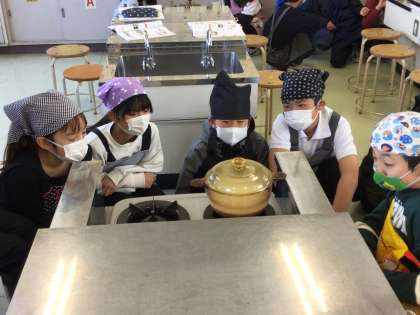 自分たちで収穫した米を炊きました。