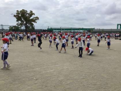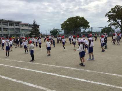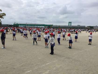全校でなわとびをします。