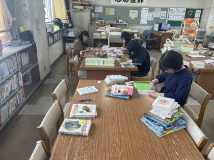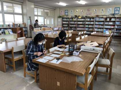 図書の修理は、カバーを外してラベルの貼り替えをしました。