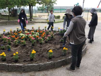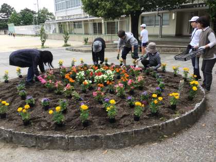 若園クローバーのボランティアのみなさんが花壇の花を入れ替えてくださいました。