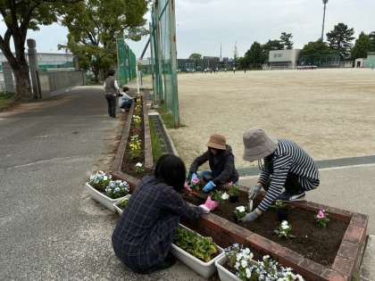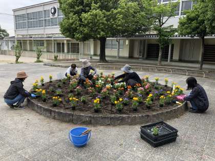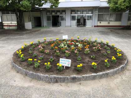 色とりどりの花を植えると、花壇がとてもにぎやかになりました。