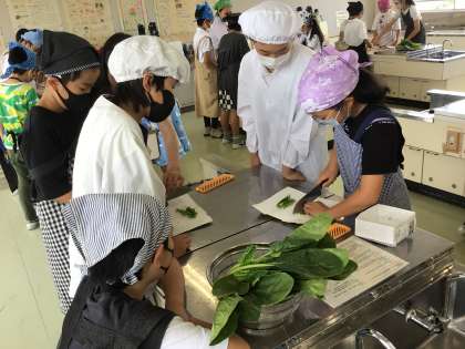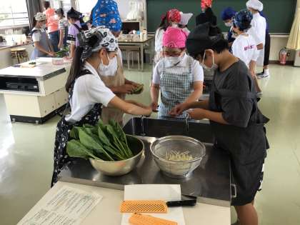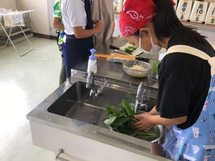 調理実習 ほうれん草におひたし
