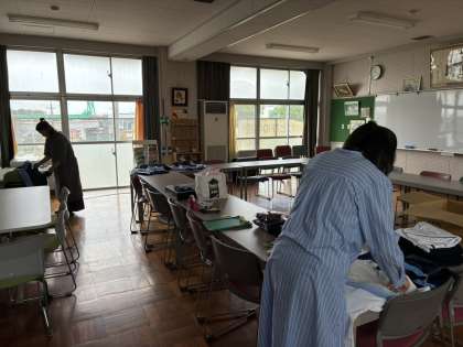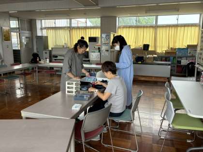 皆さまから譲っていただいた学用品をまたどなたかに使っていただけるように、中身を確認したり名前を消したりする作業をしました。