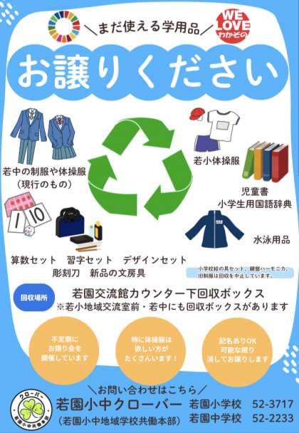 ご家庭で眠っている学用品がありましたら、ついでにお持ちください。