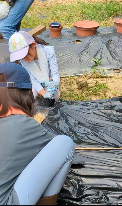 畑講座第2回 大豆のタネをまきました 公開日 2025/07/14 更新日 2025/07/14 地域学校共働本部 若小クローバーとまなviva!共催講座2回目は、6組の家族が参加してくれました。 マルチに穴を開け、「大きくなーれ」と声をかけながら大豆のタネをまきました。 次回は枝豆収穫と草抜きです。 元気に育ってくれますように。