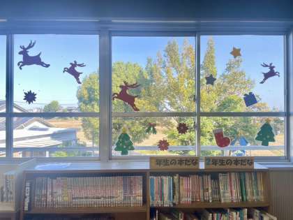 運動会の練習を見ながら窓飾りの貼り替えを行いました。