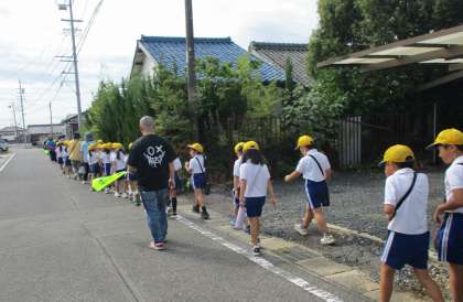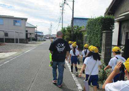 2年生の町探検に付き添って、交通安全の見守りをしました。