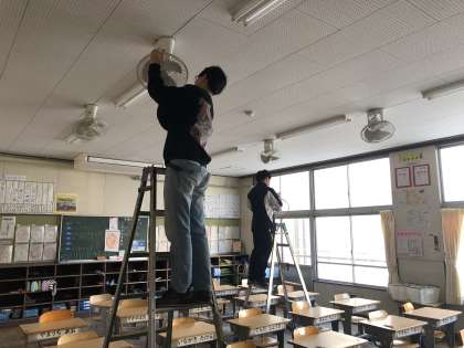 教室の扇風機掃除