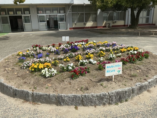 花壇のパンジーも応援してくれているかのようにきれいに咲いています。